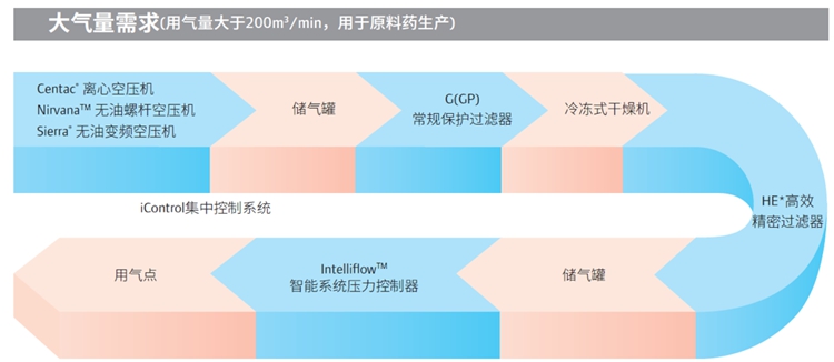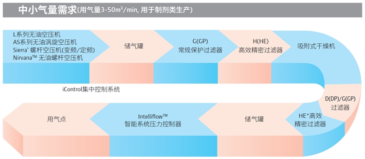 制藥企業要達到GMP高要求的空氣潔凈度,須對壓縮空氣的含油量、含塵、壓力漏點進行嚴格的控制。