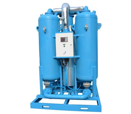 微熱再生壓縮空氣干燥機,綜合變壓吸附和變溫吸附之優點,在常溫高蒸汽分壓下吸附(工作);在較高溫度,低蒸汽分壓下解析(再生),即吸附劑在吸附過程中吸附水份,在再生過程依靠高品質再生氣(加熱干燥的空氣)的熱擴散和低分壓兩種機理的共同作用而得以完全清除。